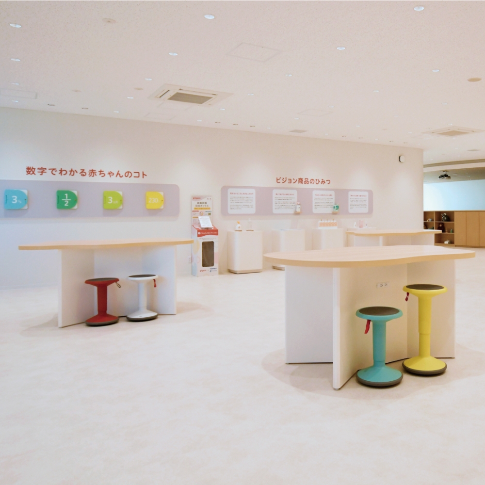 1F ここからご入場ください。 1F 赤ちゃんとの生活シーンや私たちの品質へのこだわりをご覧いただけます。 1F 製品の原材料となる原料やボトルなどの「荷受け・検査」を行う場所です。 1F 製品製造に使用する原料を保管しています。 1F 「ひょうりょうしつ」と読みます。原料を正確に量る作業を行います。 1F 内容液を製造する場所です。衛生度はなんと手術室と同じレベル! 1F 製造された内容液をこちらに保管します。 1F 容器に内容液の充填作業を行う場所です。 1F 外装検品を行い、箱詰めして出荷する作業を行う場所です。 1F 完成した製品を保管する場所です。「パレタイザー」によりパレットに積みつけます。 2F 工場で作られている商品がずらり! 2F 社員の働くスペースです! 2F 広いラボで何度も試作を行い、新商品が生まれています。 2F さまざまな製品検査を行い、高い品質を維持できるよう努力しています。 2F 抗菌試験を行い、赤ちゃんのお肌に優しく安全な商品を生み出しています。 2F お客さまのお手元に届いた後も定期的に商品の品質確認をしているので、たくさんのサンプルを保管しています。 2F 工場見学時は休憩にご利用ください。 2F 大人数が集まる集会やイベントなど、様々な用途で使用されます。 2F オリジナルの商品づくりやワークショップなどさまざまな体験ができます。 2F 工場見学の記念にパシャリ! 2F 小さなお子様と一緒でも安心!おむつ替えもできます。
