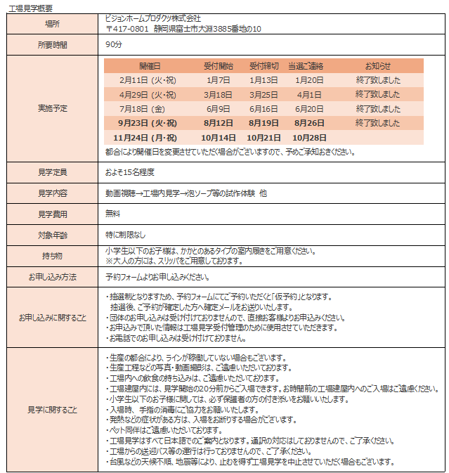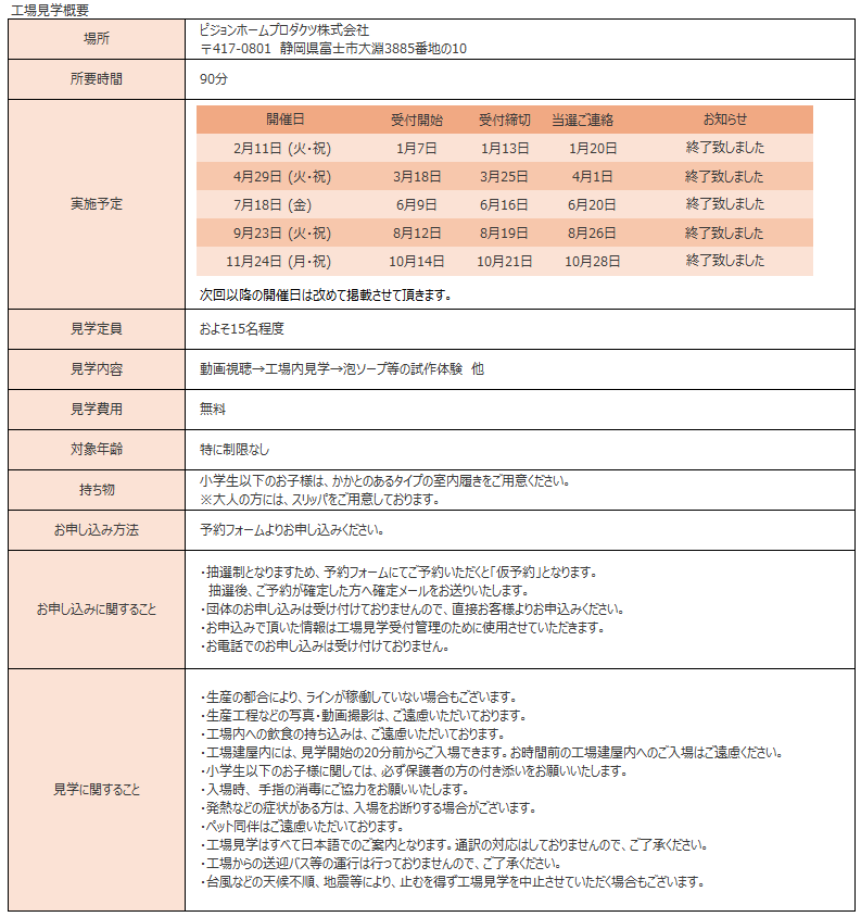 ピジョンホームプロダクツでは、工場見学を行っています。