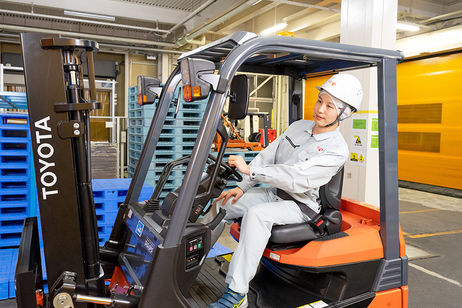 主に原材料の受け入れや出荷、フォークリフトを使った倉庫管理と、原材料を管理するシステム入力等です。